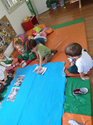 tinta guache azul, os nossos pequenos se divertiram muito, espalharam tinta com
